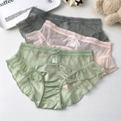 纯欲小性感蕾丝半透明透气内裤网纱荷叶边女内裤透气裸感女士内裤
