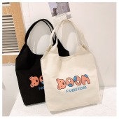 批发帆布女包单肩大容量简约新款冬季文艺休闲旅行字母上班托特包