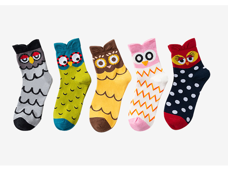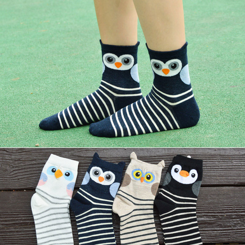 2018春秋季 韩版新款全棉女袜 立体可爱猫头鹰女士中筒袜子批发