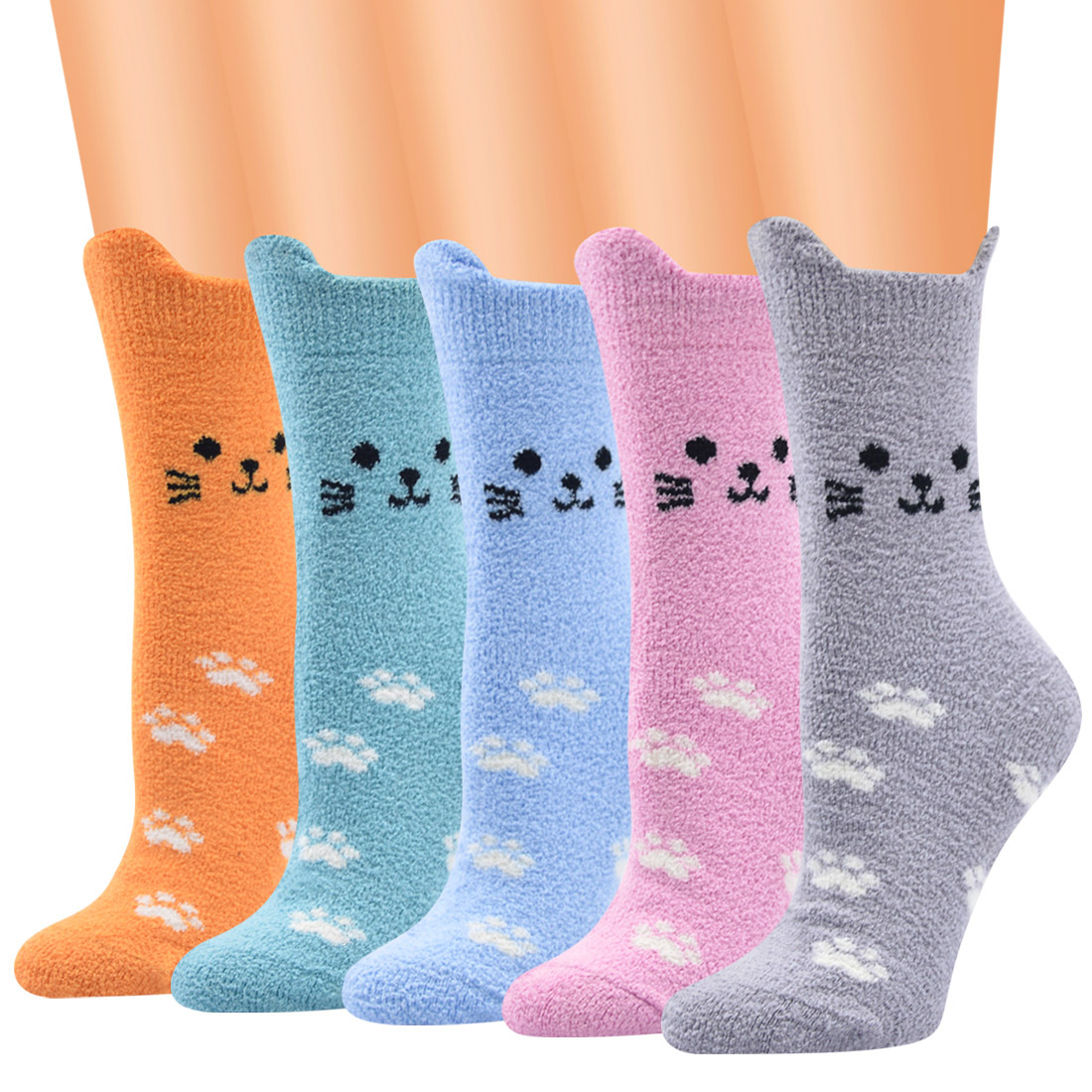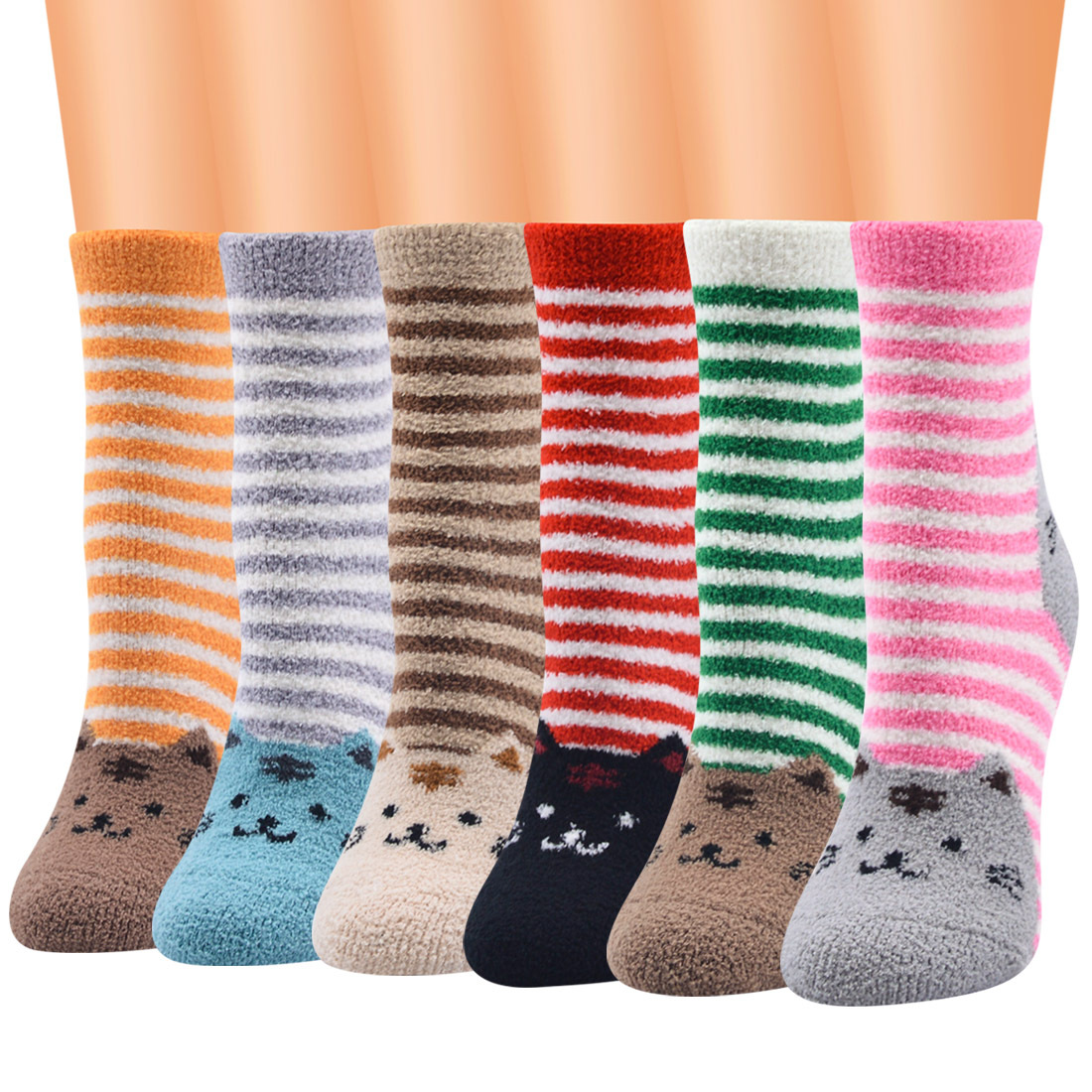 新款珊瑚绒猫咪图案袜子中筒女袜睡眠袜保暖地板袜女厂家批发直销