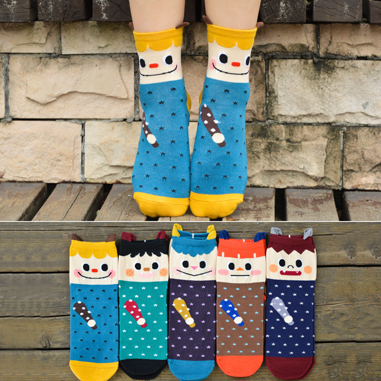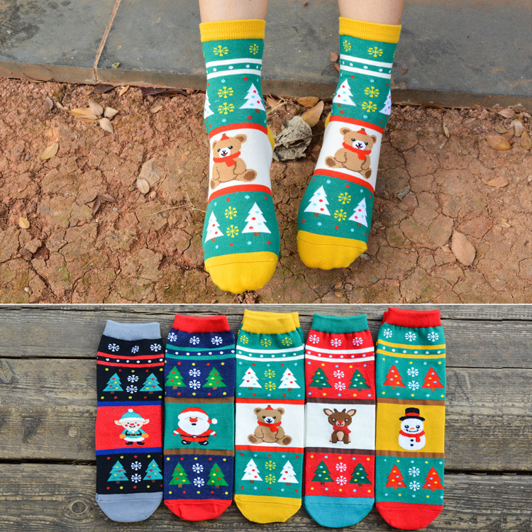 圣诞系列卡通袜子 女士可爱韩国立体袜 女士中筒袜全棉 个性女袜