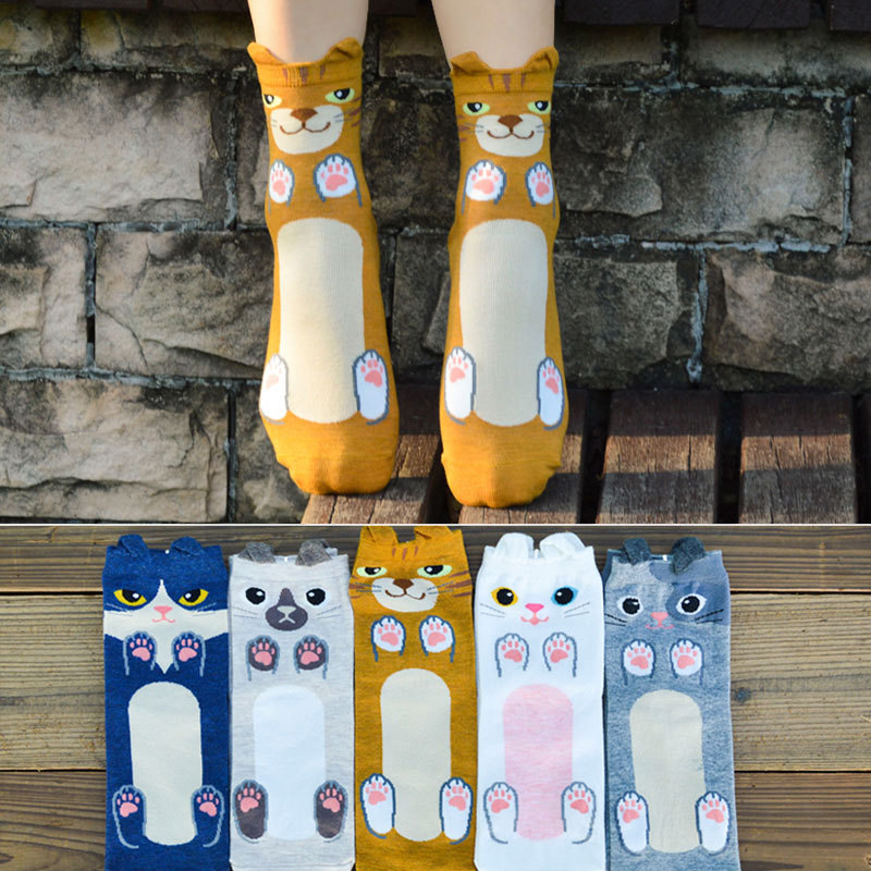 新款可爱卡通猫猫女袜 猫咪袜子 外贸原单女士袜子 立体袜批发