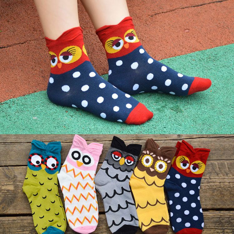 韩国可爱动物立体短袜 猫头鹰可爱卡通全棉女袜 棉女士袜子批发