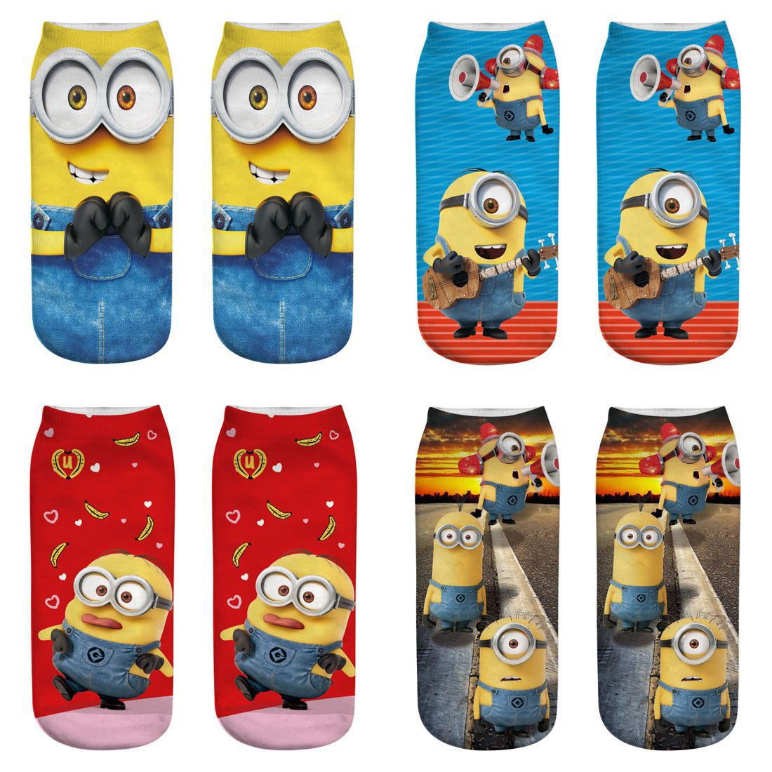 新款小黄人系列3D印花袜子速卖通亚马逊 ebay 热销印花女袜子