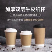 商用一次性90口径牛皮纸双层中空黄色纸杯热饮咖啡小容量奶茶杯