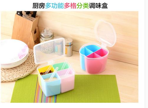厨房多功能多格分类调味盒带盖调料盒 分格式方形圆形塑料调味罐