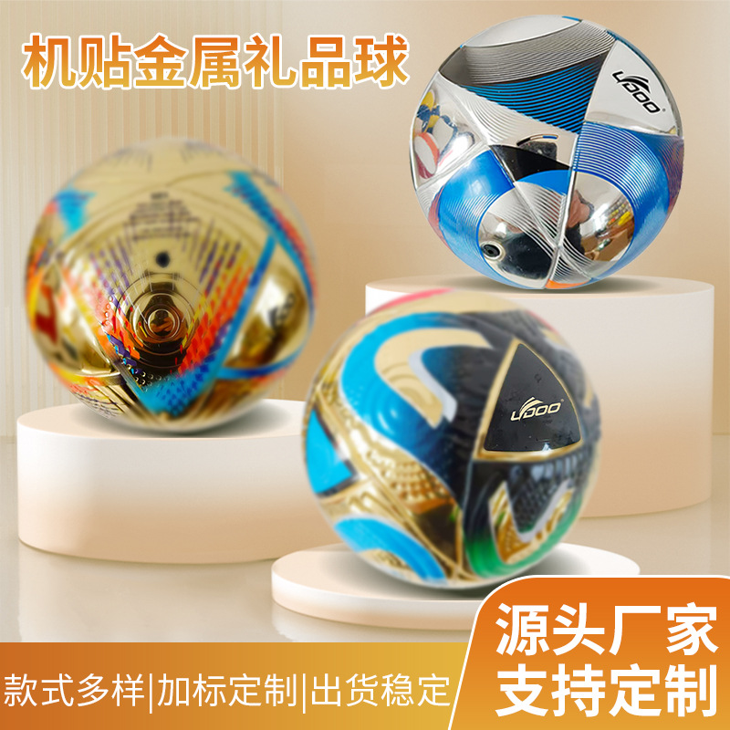 礼品足球贴牌定制厂家5号金属PU足球闪亮足球OEM土豪金色足球定制