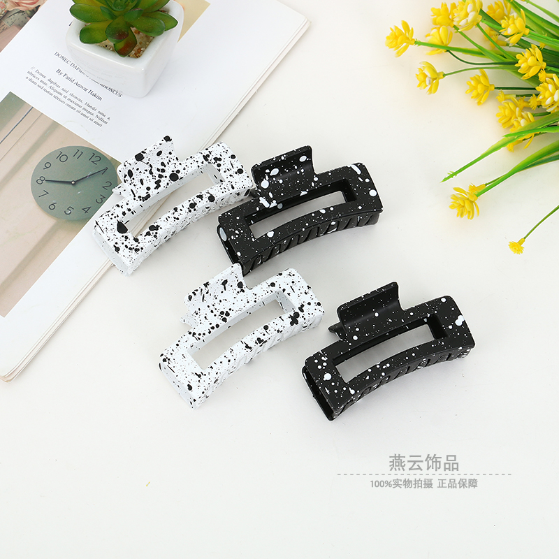 黑白泼墨抓夹ins简约大号韩国网红冷淡风后脑勺气质发夹女鲨鱼夹