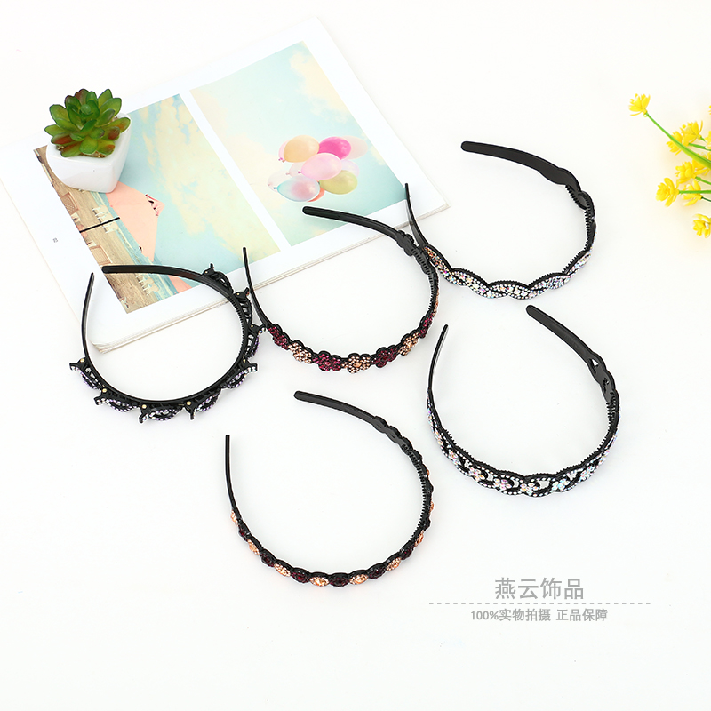 新款韩版饰品水钻简约百搭发箍发卡气质淑女防滑头箍花朵波浪头饰