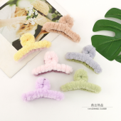 秋冬新款仿兔毛鲨鱼夹毛毛法式抓夹后脑勺碎发丸子头毛毛发夹发饰