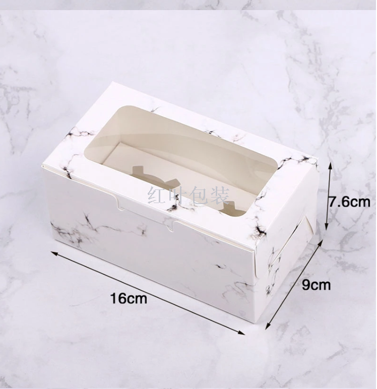 批发 定制 logo 纸杯蛋糕盒 烘焙盒子 2孔 4孔 6孔 开窗大理石纹