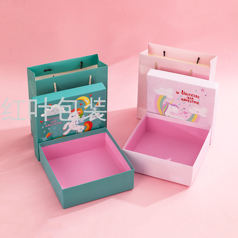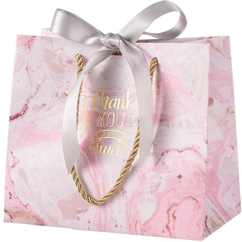 批发定制logo 可爱粉色系 礼品包装纸盒+礼品纸袋 PVC开窗 蝴蝶结