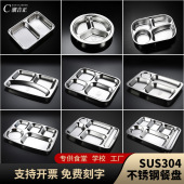 304食品级不锈钢快餐盘家用食堂打饭铁盘大人儿童分格隔饭盘带盖