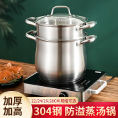 三层钢304不锈钢家用汤锅熬粥蒸煮拉面煲汤炖锅大容量高汤锅电磁
