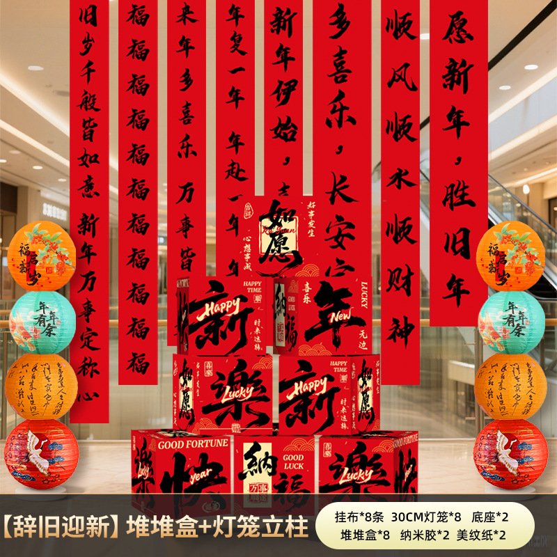 丝绸对联定制春节礼盒包订做广告烫金防晒对联红包福字窗花大礼包