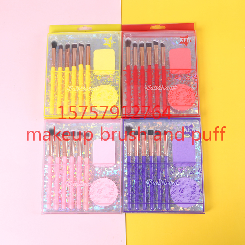 粉扑+化妆刷6支化妆套刷盒装套装 腮红刷眼影刷眼部刷修容刷外贸