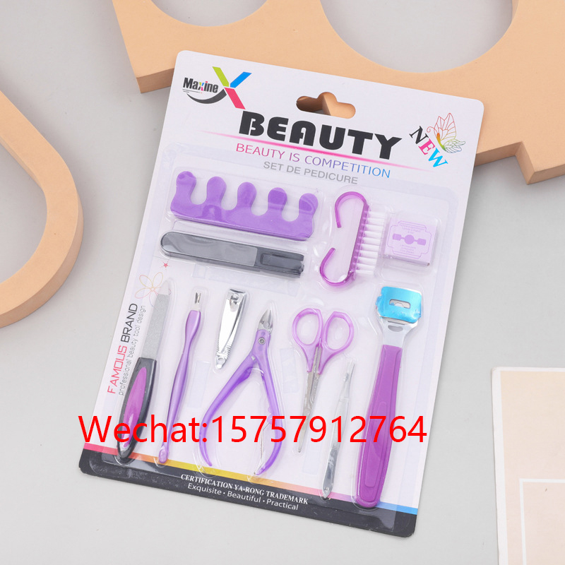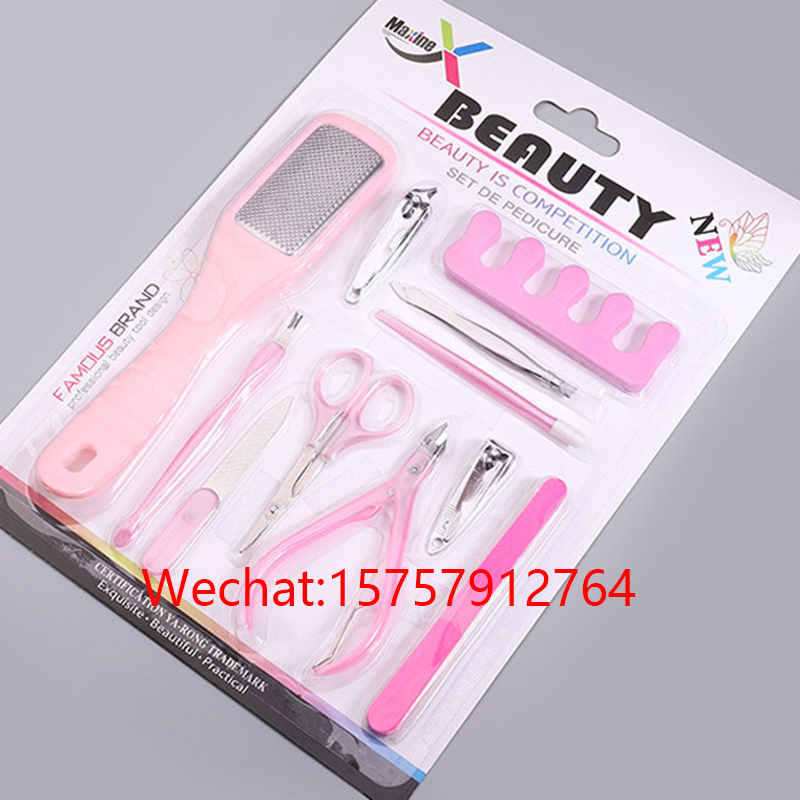 美甲工具修甲工具吸卡11件套装碳钢搓脚板脚挫护理外贸出口跨境