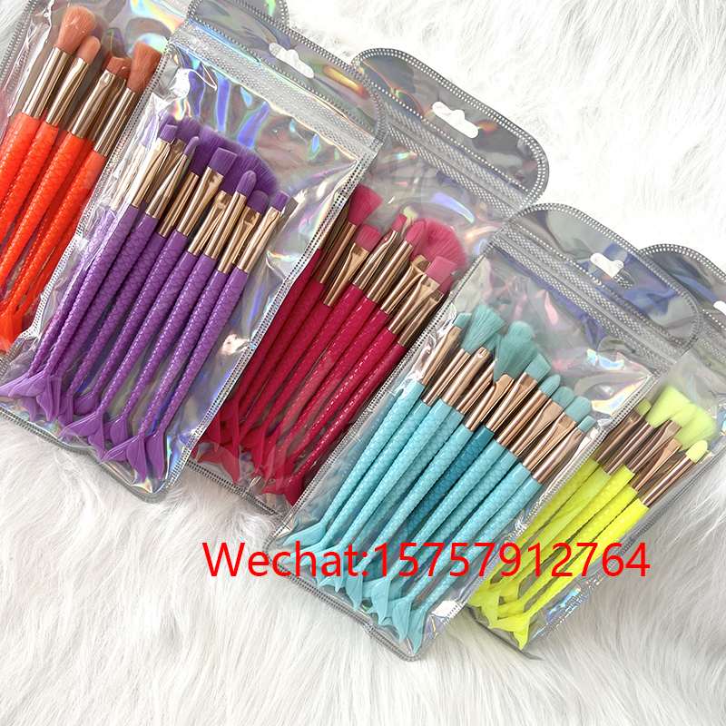 化妆刷套刷10支鱼尾荧光彩色化妆工具眼部刷眼影刷伞形刷厂家直销