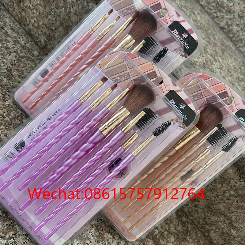 法沫拉7支麻花塑料柄彩色套刷化妆刷腮红眼部刷泡壳外贸出口跨境
