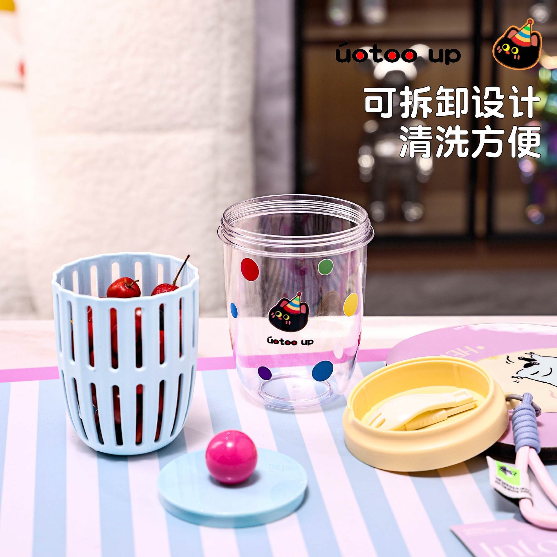可沥水果杯沙拉杯食品级自带叉子上班族外出带便携沙拉盒便携挂绳