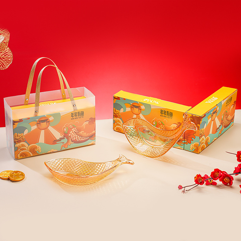 年年有余玻璃果盘两件套茶几坚果水果盘套装银行珠宝保险活动礼品