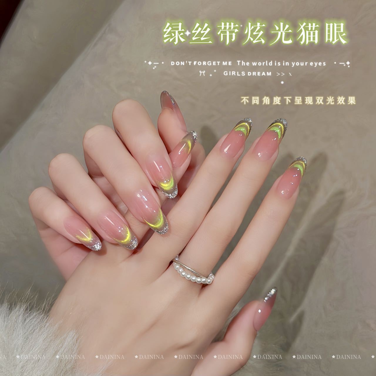 网红爆款显白流行绿丝带炫光猫眼美甲胶甲油胶温柔时尚美甲店专用