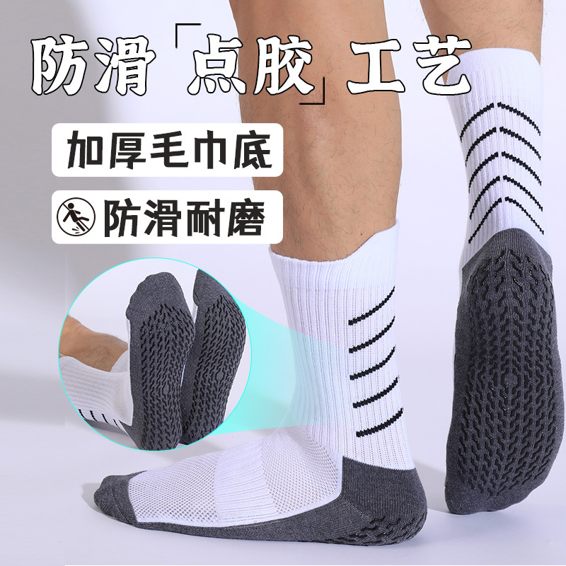 跨境专供吸汗中筒毛巾底加厚足球袜加工定制点胶防滑透气运动袜子