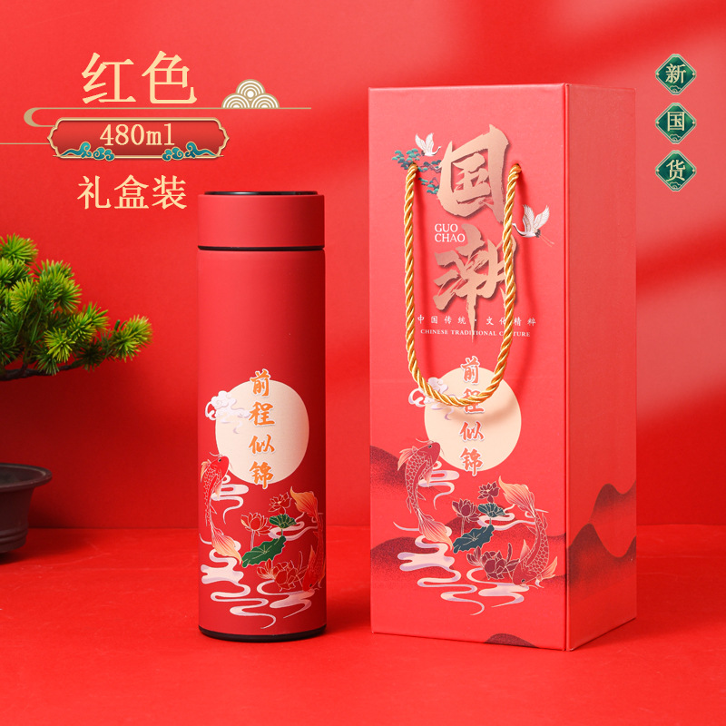 中国风复古智能温度显示保温杯ins风国潮商务礼品不锈钢水杯定制