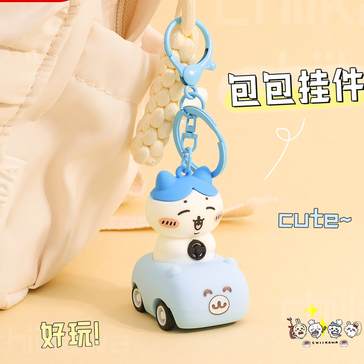 日系chiikawa回力车卡通钥匙扣创意吉伊卡哇公仔学生书包挂件批发