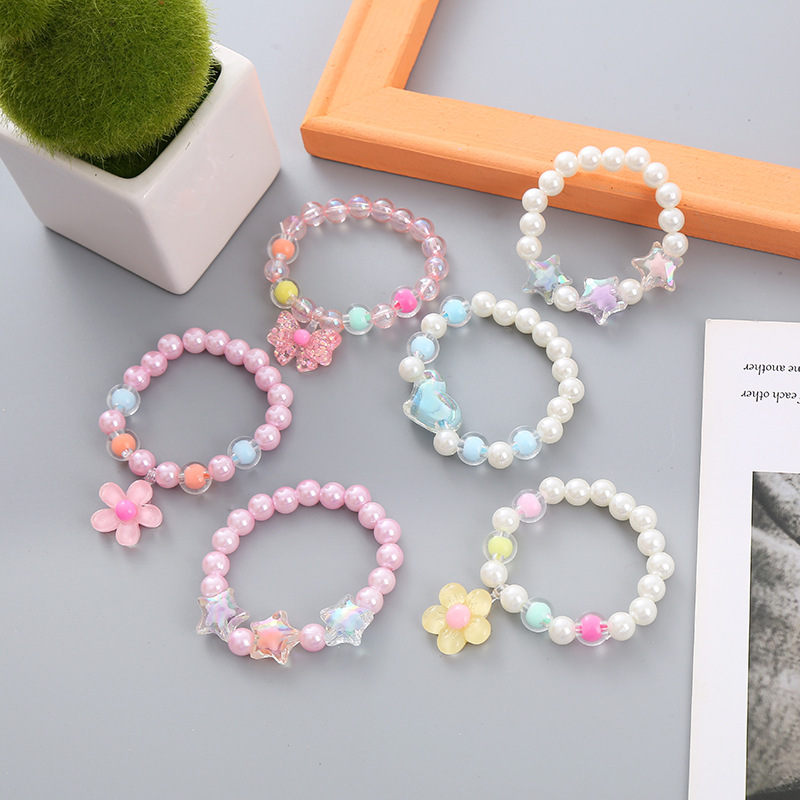 儿童韩版仿珍珠手串小娃娃手饰女孩爱心星星可爱吊坠手链厂家直销