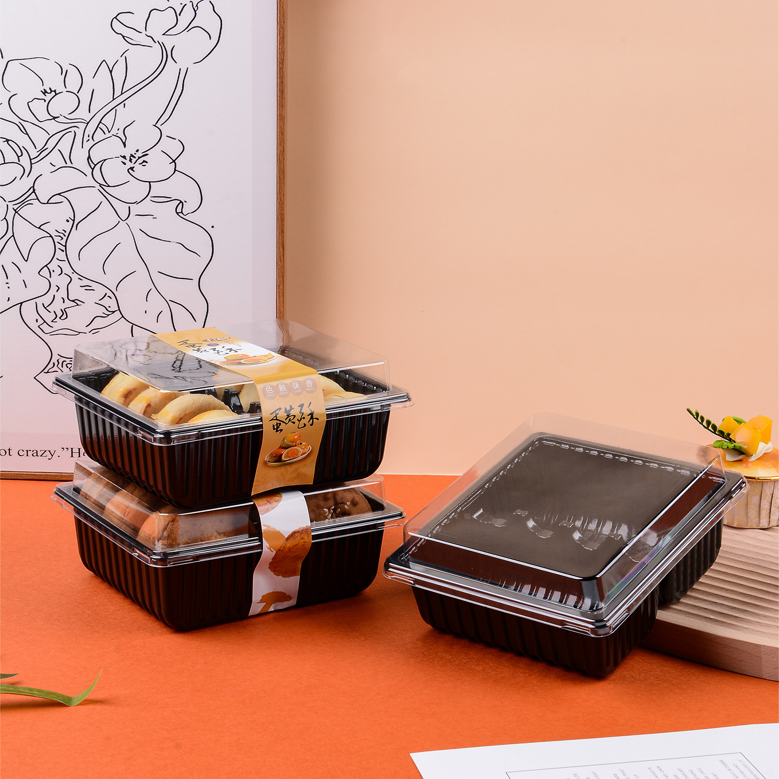 新款三明治肉松小贝轻食泡芙麻薯蟹小方包装盒甜品打包盒防雾西点