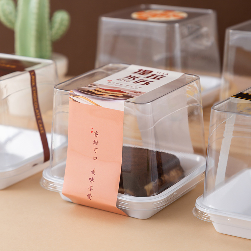 网红厚切提拉米苏蛋糕盒子熔岩巧克力包装盒透明方形切块红丝绒盒