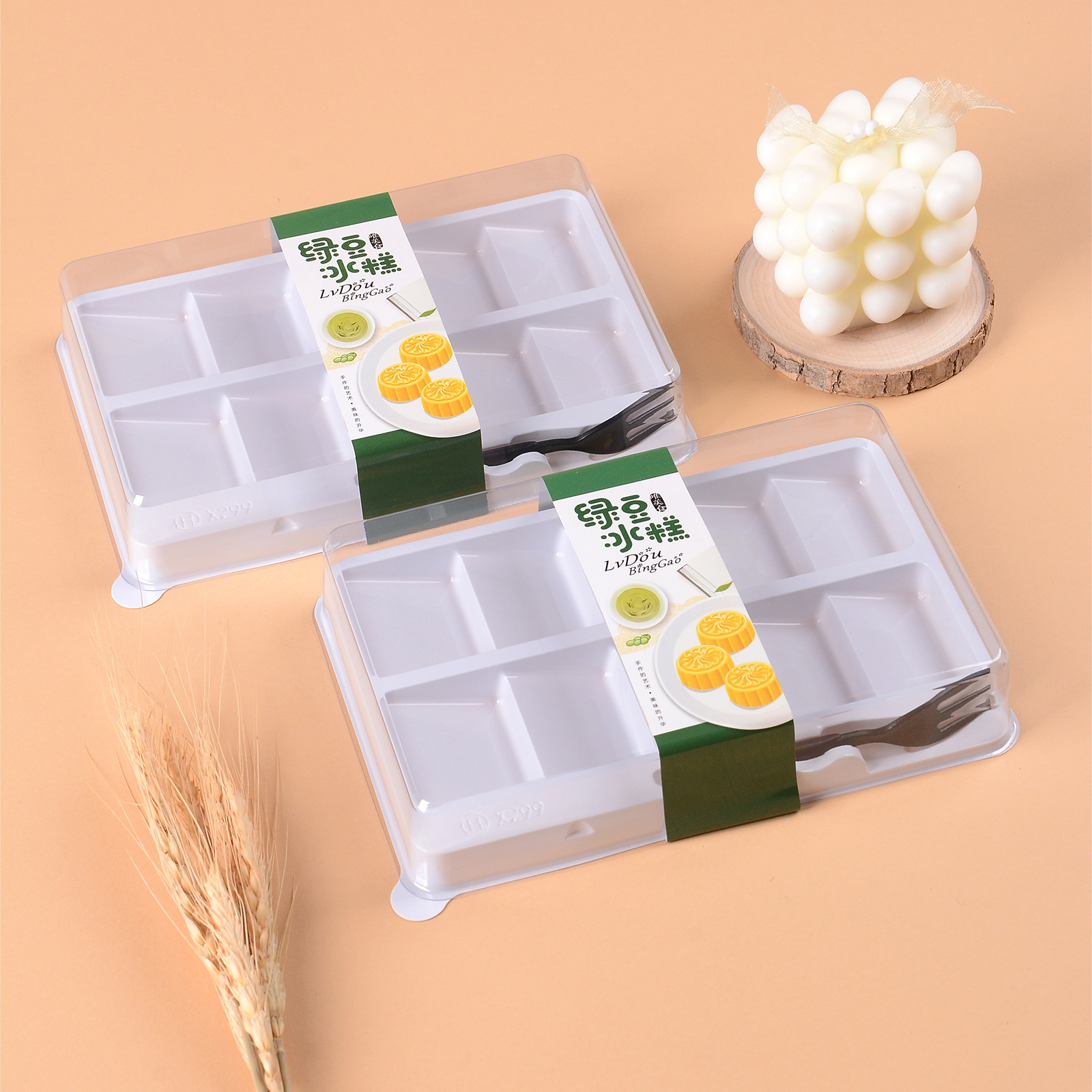 绿豆糕包装盒10粒装透明梯形凤梨酥青团中式糕点冰糕带叉打包盒子