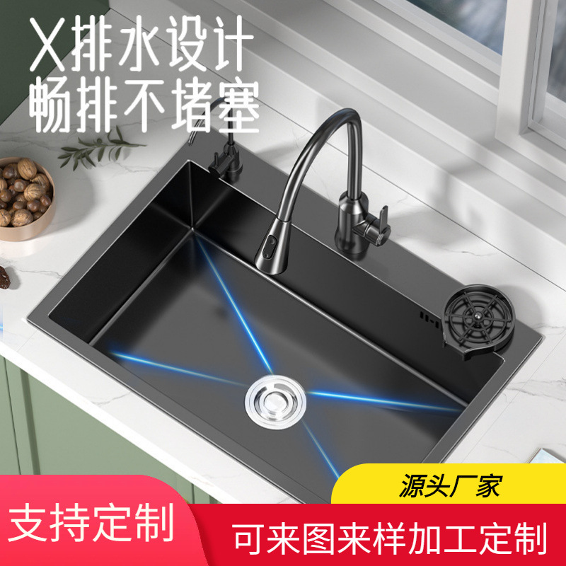 厨房304不锈钢水槽黑色纳米洗菜盆大单槽洗菜池水池加厚洗碗槽