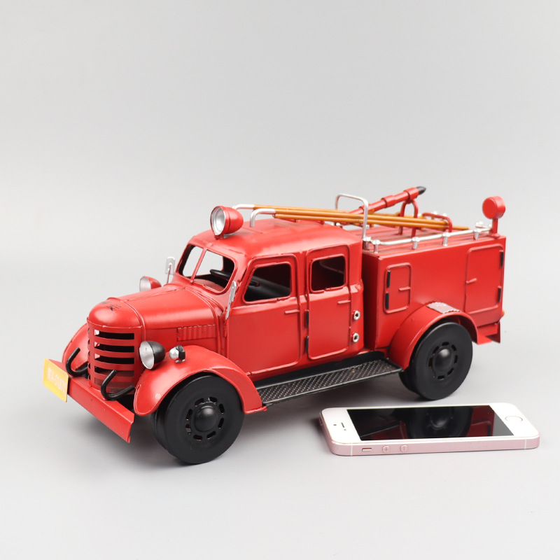 复古老式解放消防车模型铁艺怀旧手工艺收藏品橱窗柜客厅家居摆件