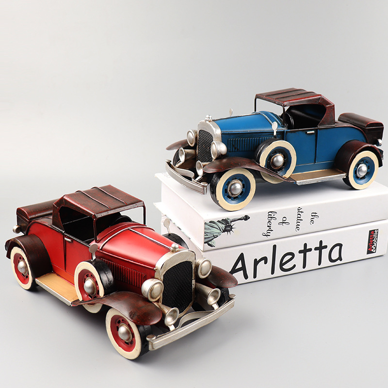 凯迪拉克V12老爷车模型铁皮手工艺老式汽车客厅橱窗收藏装饰摆件