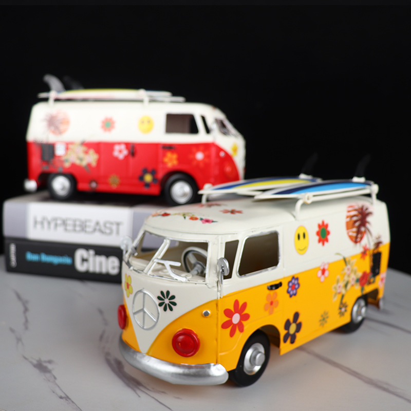 创意经典汽车巴士模型纸巾盒铁艺手工艺品客厅家居茶几摆件抽纸盒