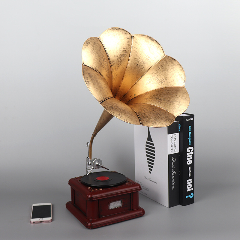 复古老式大喇叭留声机模型摆件黑胶唱片机创意家居软装饰摄影道具