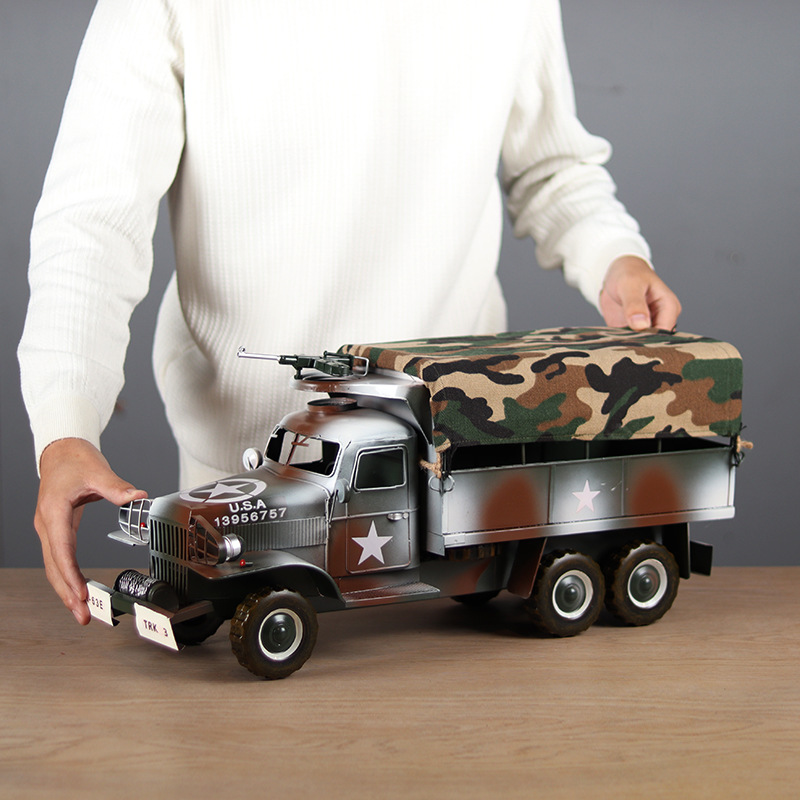 复古怀旧老式解放车军车仿真模型铁艺摆件家居酒柜装饰工艺品礼物