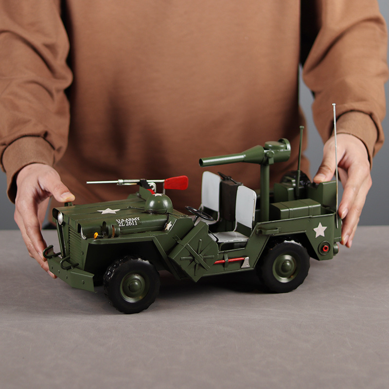 仿真二战美式威利斯重装吉普车模型铁皮手工怀旧军车橱窗桌面摆件