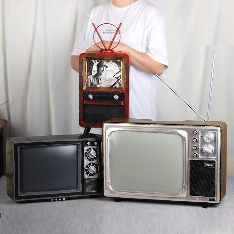 老式黑白电视机模型怀旧酒吧商店橱窗陈列道具摆件复古装饰品摆设