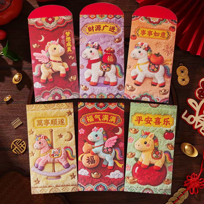 2026马年创意5D仿真印刷刺绣红包春节压岁钱利是封通用拜年款工厂