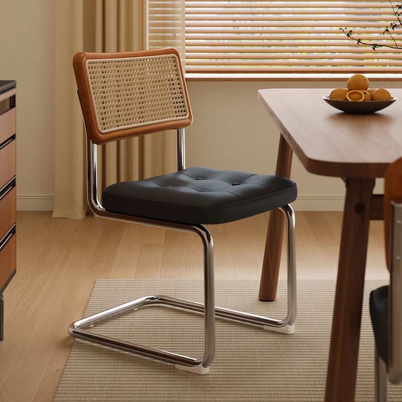 法式中古藤编椅子意式餐椅家用设计师轻奢餐桌椅工业风复古靠背椅