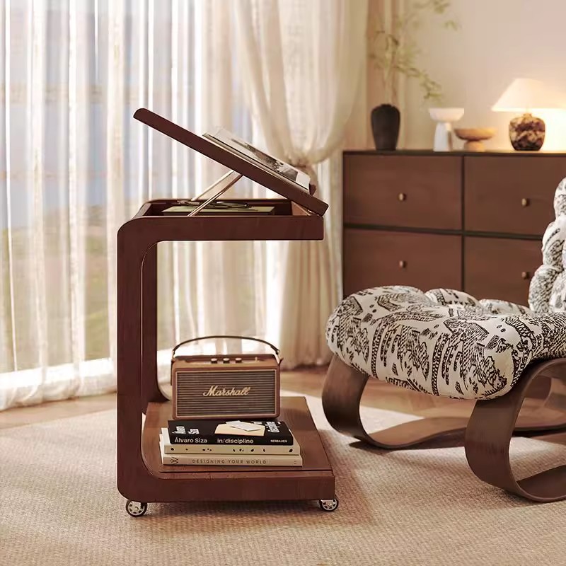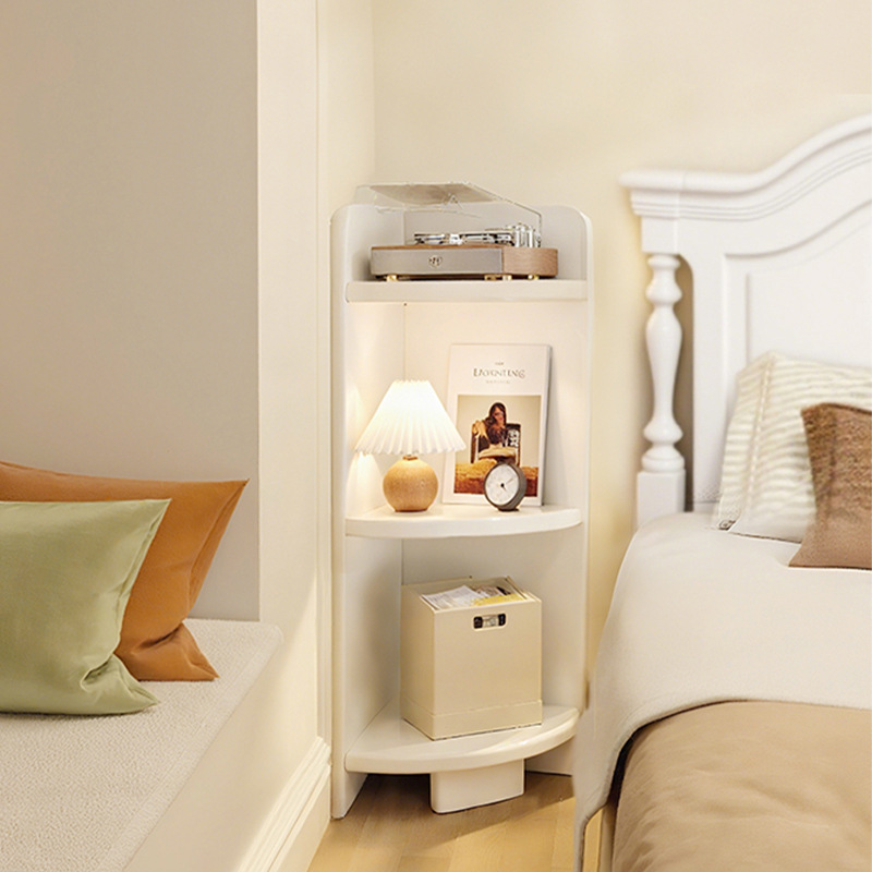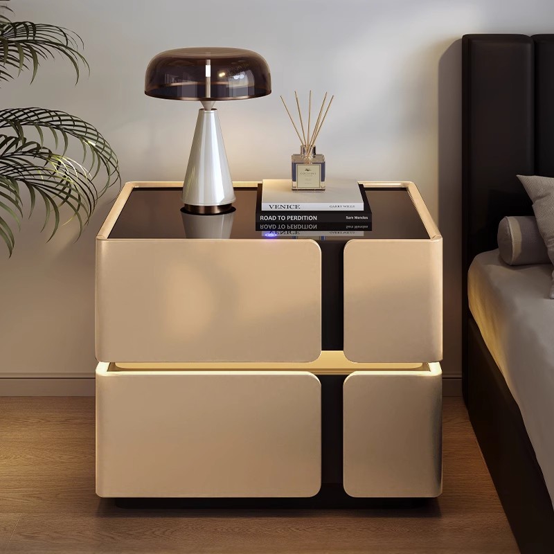 黑色床头柜带灯2025新款轻奢高级感家用卧室设计感小众实木床边柜