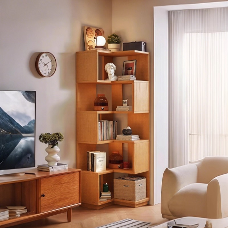 实木转角书架客厅落地置物架学生家用多层展示收纳架墙角储物书柜