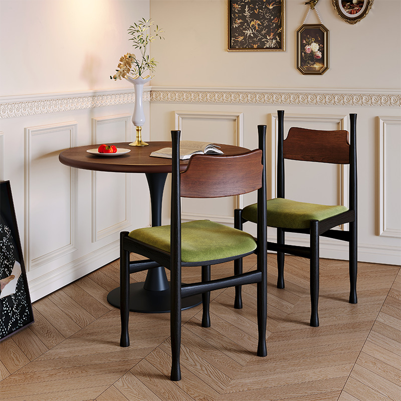 中古实木餐椅家用法式餐厅靠背椅子复古梳妆椅轻奢高级感简约休闲