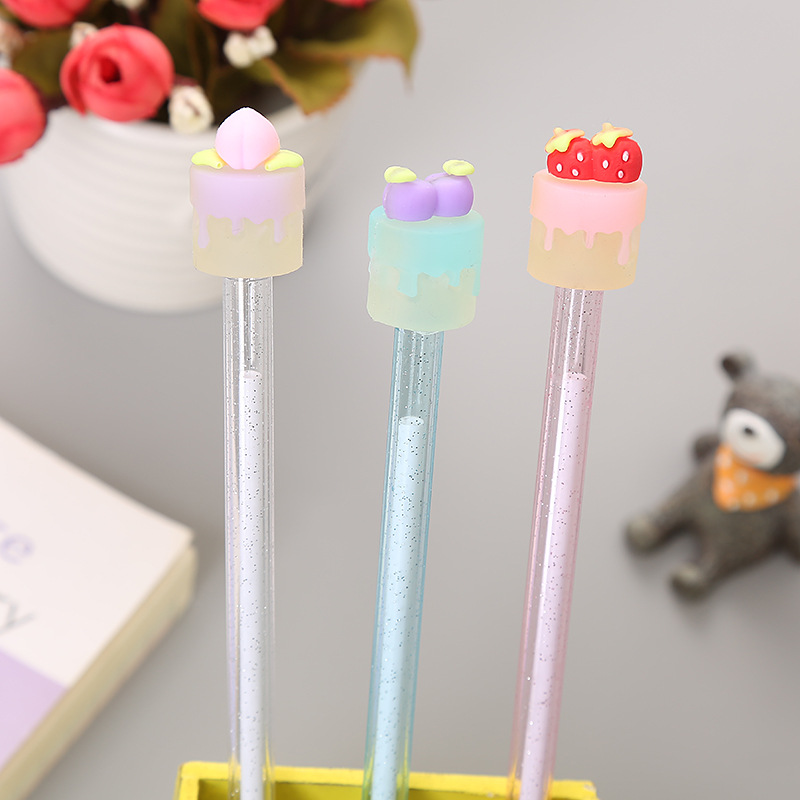 可爱水果蛋糕中性笔 创意学生考试黑色水笔 金粉透明杆办公签字笔
