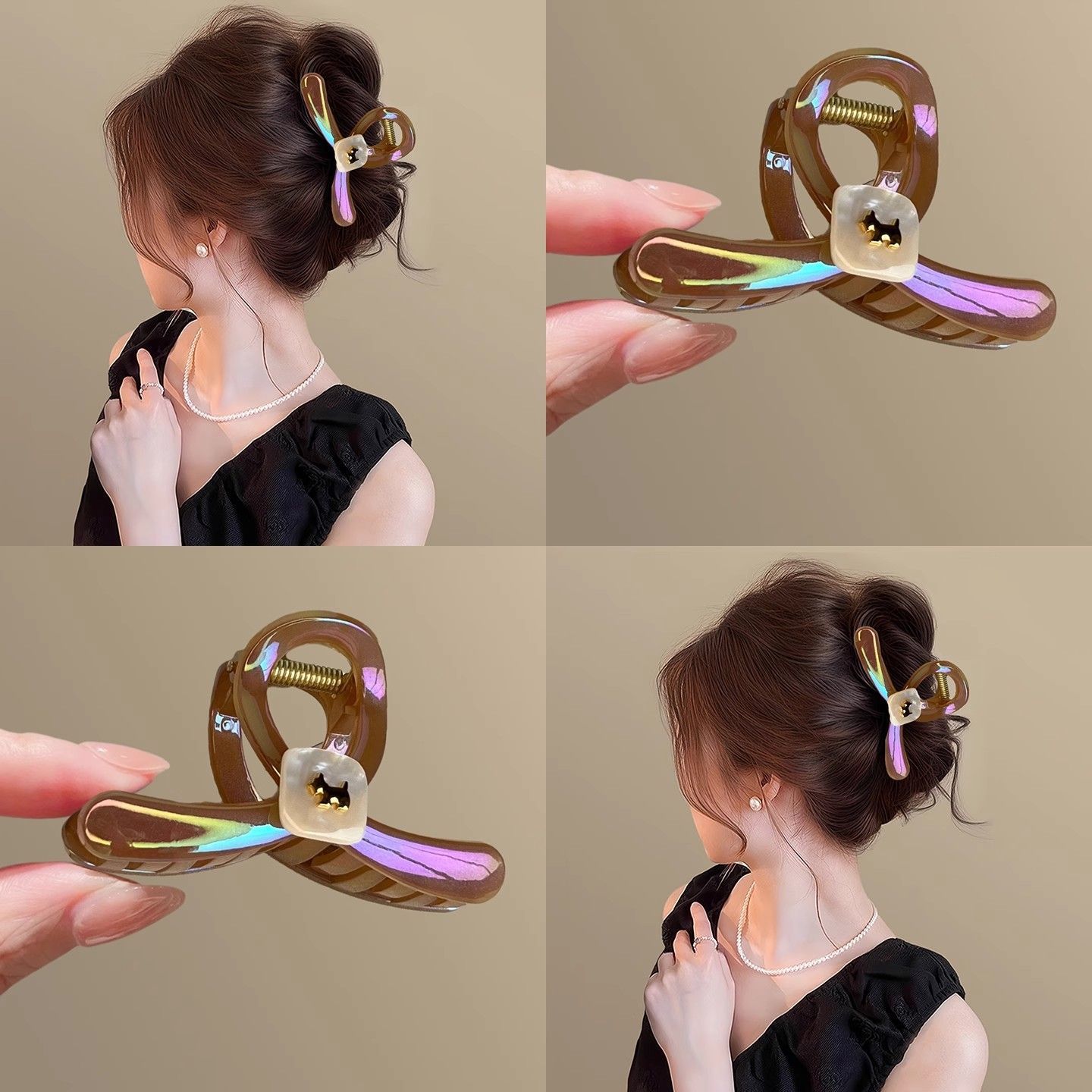 极光焦糖!细闪渐变半扎发狗狗抓夹!2025新款高级感后脑勺鲨鱼夹