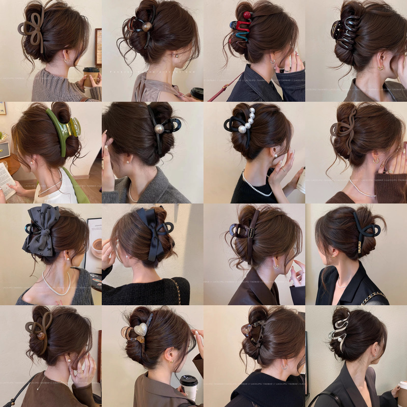 咖发夹系大号抓夹女后脑勺盘发鲨鱼夹轻奢高级感韩式毛绒发卡发饰