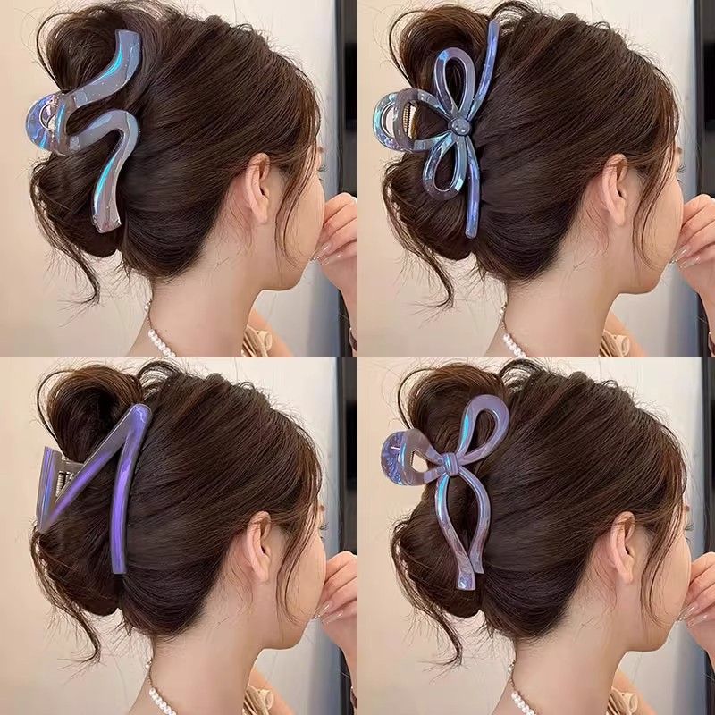 大号抓夹女高级感2025新款蝴蝶结鲨鱼夹轻奢风炫彩紫色Z字发夹女